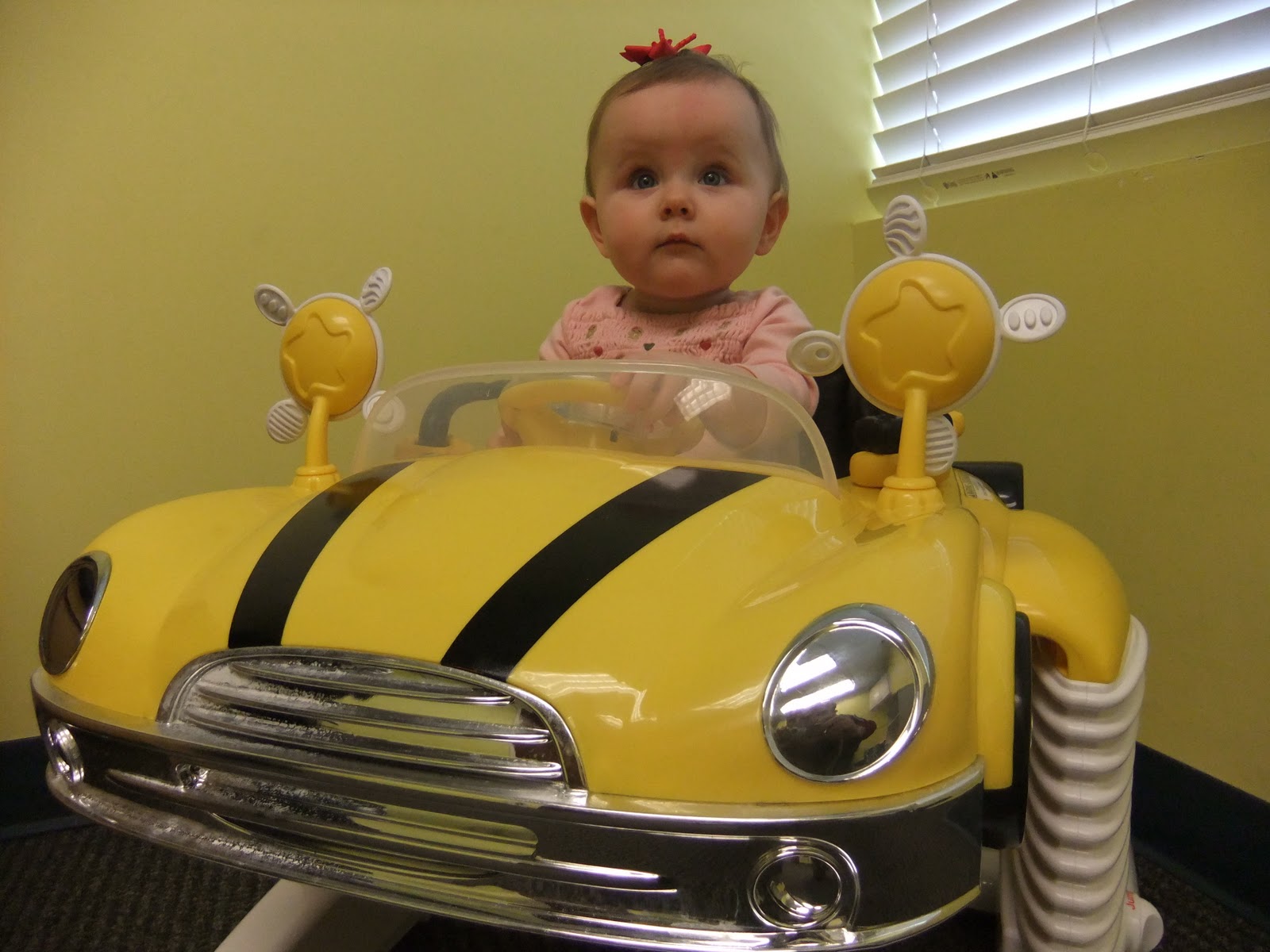 Molly, what have you been doing over your last month? Well, early in your 7th month, you would lift one of your hands up while you were drinking your bottle and twist it and turn it and just study it....it was one of the most precious things I've ever seen. But now that you're "older", you've stopped doing that. Another thing you did a lot was ROLLLLLL. You have become a master "roller".....as soon as we lay you on the floor, you roll....and you've become a really good pivot-er. You see something you want, and you go after it. I love that about you! Recently, you scared me and shocked me and made me laugh all at the same time. I had put you in the swing for your nap, and after a little while, looked up to check on you and I saw you SITTING FORWARD....straight as a board....smiling like you were up to something....and GRABBING the bars! What in the world?? To me, that looked freakish....I didn't know you could do that! I had flashbacks of you being tiny in that swing and now, here you are....Evil Kenieval (sp). You went Christmas shopping with me...I did all our Christmas shopping pretty much in one night at WalMart and you were my little Elf Helper. Crazy me didn't take your carseat in and I needed you to sit in the basket of the buggy....thinking you may be ready....but you wobbled too much. Not quite ready...so, as you got tired, I went to the homegoods department and got a bathroom rug...lined the basket with it, and layed you down. You took a nap in your perfectly sized, cozy compartment and woke up all smiles. Your smiles continue....your personality is so goofy, fun, and kind. I'm so proud of you already. You recently withstood an ear infection and bronchiolitis like a happy champ. Jolly Molly....please don't grow up!